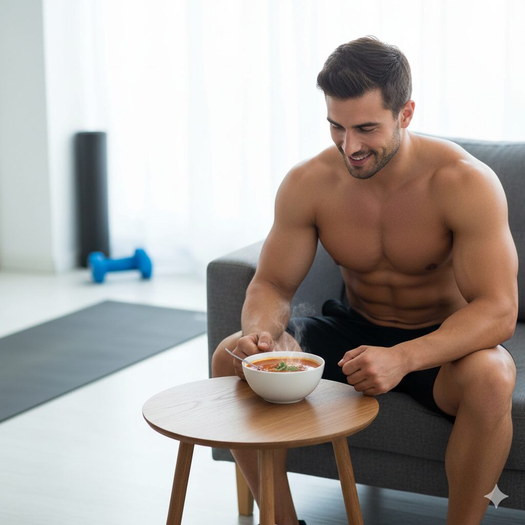 温かいスープがもたらす安心感と、良質なタンパク質が支える力強い体。