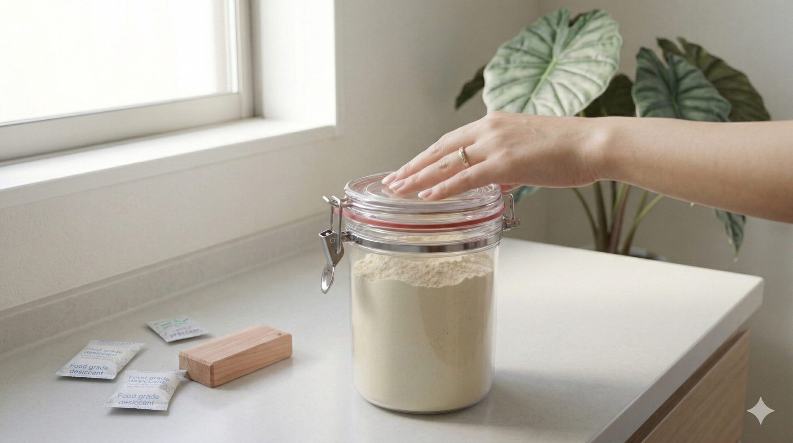 さらに、プロテインの鮮度を長期間にわたって最高に保つための裏技として、食品用のシリカゲル乾燥剤と脱酸素剤のダブル使いを強くおすすめします。密閉容器の中にこれらをポンと入れておくだけで、容器内の不要な水分と酸素を完全に吸収し、粉末の酸化による風味の劣化やダニの発生を未然に防ぐことができます。とくに湿度の高い梅雨の時期や夏の終わりには、この小さな工夫がプロテインの品質を守る生命線となります。