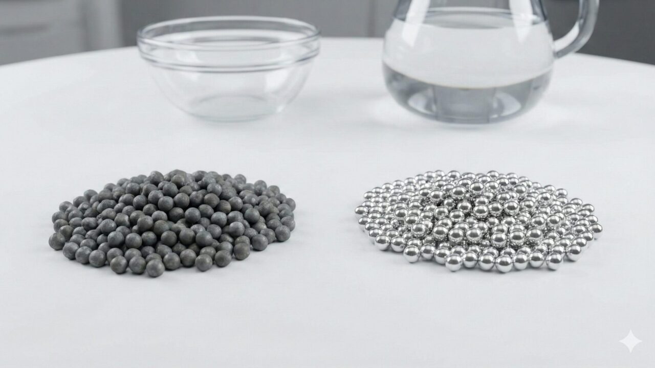 復活させる方法は非常に簡単です。水またはぬるま湯に「クエン酸」を溶かし、その中にマグネシウム(ネットごと、または粒を取り出して)を浸します。するとシュワシュワと泡が出て、酸化被膜が溶け始めます。15分〜20分ほど浸けて、表面がピカピカの銀色に戻ったら、すぐによく水洗いをして乾燥させてください。これを月に1回程度行うだけで、マグネシウムの寿命を延ばし、常に高いパフォーマンスを維持することができます。ただし、やりすぎると粒が痩せて小さくなるので注意しましょう。