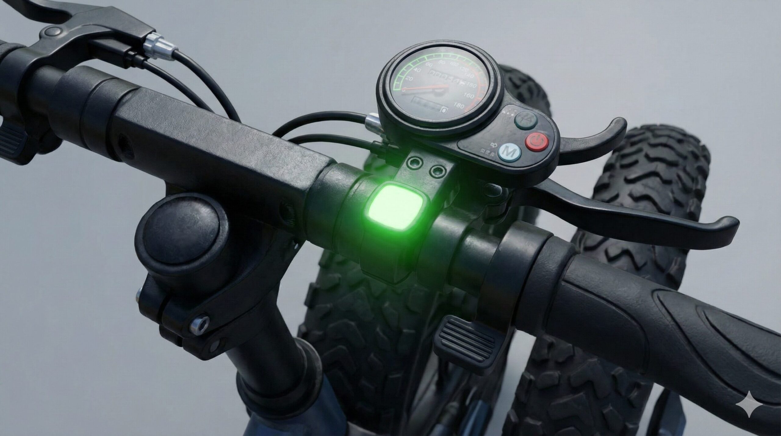 最大の特徴は、**最高速度表示灯(緑色のランプ)**が取り付けられていることです。このランプが点灯(20km/hモード)していれば車道を、点滅(6km/hモード・特例特定小型原付)していれば「自転車走行可」の歩道を走ることができます。この切り替え機能と識別ランプがないモデルは、たとえ速度が遅くても特定小型原付としては認められず、運転免許やヘルメット着用が必須となる「一般原付」扱いになるため注意が必要です。