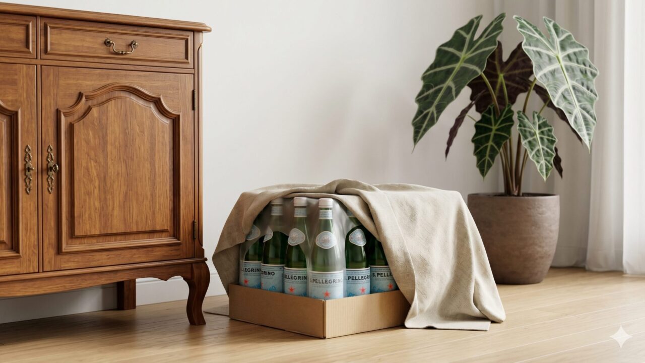 生活感の塊である飲料のストック問題。とくにペットボトルの箱は重く、一度置いたらなかなか動かせないため、最初のポジション決めが肝心です。多くの方が、玄関先やキッチンの片隅にそのまま放置してしまい、毎日その景色を見るたびに気分を下げてしまっています。せっかくおしゃれな家具や観葉植物などを揃えて癒やしの空間を作っても、その横に無骨な段ボール箱が鎮座していては、くつろぎの雰囲気も台無しになってしまいますよね。